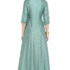 Green Rayon Crepe Foil Print Flared Ethnic Dress