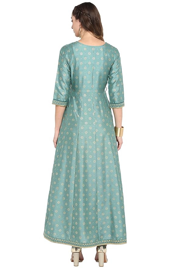 - Style:- Length: 53(inch) | Pattern: Foil Printed | Occasion: Casual | Type: Flared | Sleeve Type: Half Sleeve(Regular Sleeves) | Color: Green