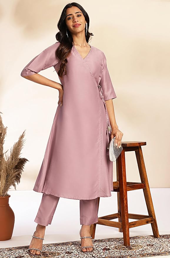 - Kurta Length: 45(Inch) | Pant Length: 37(Inch) | Colour: Lavender | Pattern: Solid | Occasion: Festive | Style: Wrap | Sleeve Type: Elbow Sleeves (Regular Sleeves )