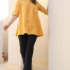 Embrace timeless style with this elegant mustard cotton tunic. Crafted from breathable and soft cotton, this piece offers both comfort and sophistication. The intricate woven design adds a touch of texture and visual interest, while the gathered detail at the waist creates a flattering silhouette. Whether you’re dressing up for a special occasion or simply looking to elevate your everyday wardrobe, this versatile tunic is a must-have.