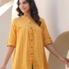 Mustard Cotton Woven Design Gathered Tunic