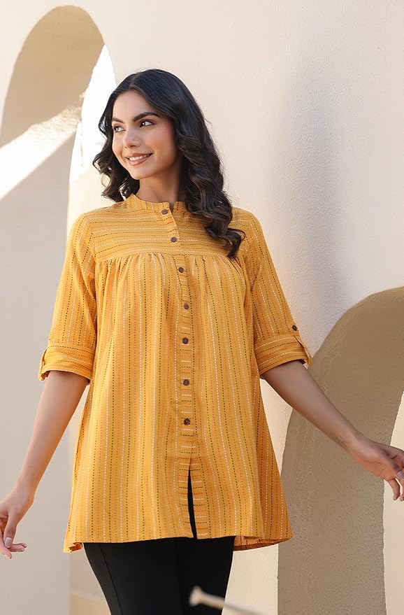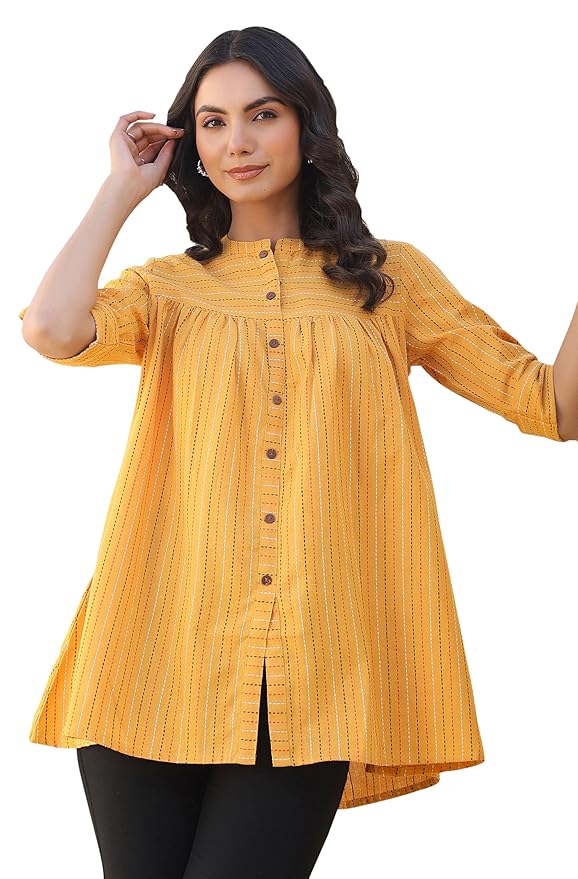 - Style: Length: 30(inch) | Pattern: Woven Design | Occasion: Casual | Type: Gathered| Sleeve Type: Half Sleeve (Half Sleeve) | Color: Mustard