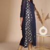 Navy Blue American Crepe Foil A-Line Kurta