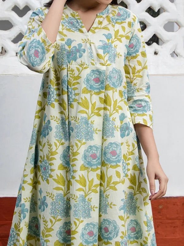 Off White Cotton Floral Regular Tunic
