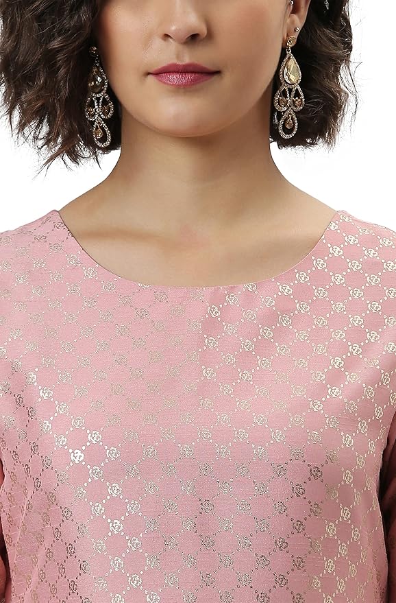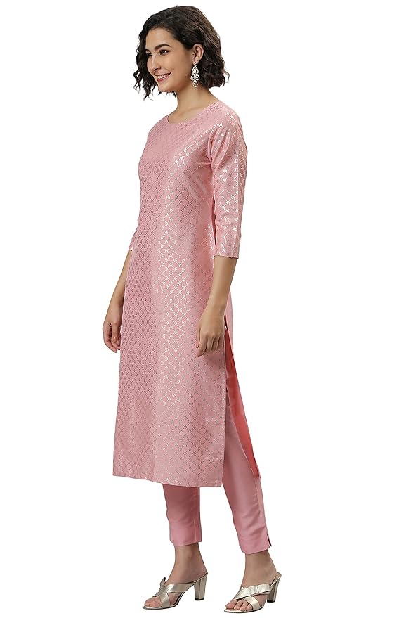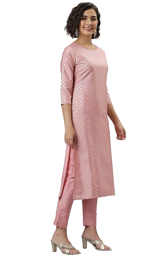 • Style: Kurta Length: 46(inch), Bottom Length: 36(inch) | Pattern: Floral Print | Occasion: Party | Type: Straight | Sleeve Type: 3/4 Sleeve Regular Sleeves | Color: Pink