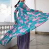 Turquoise Georgette Chevron 3 Piece Jacket Set